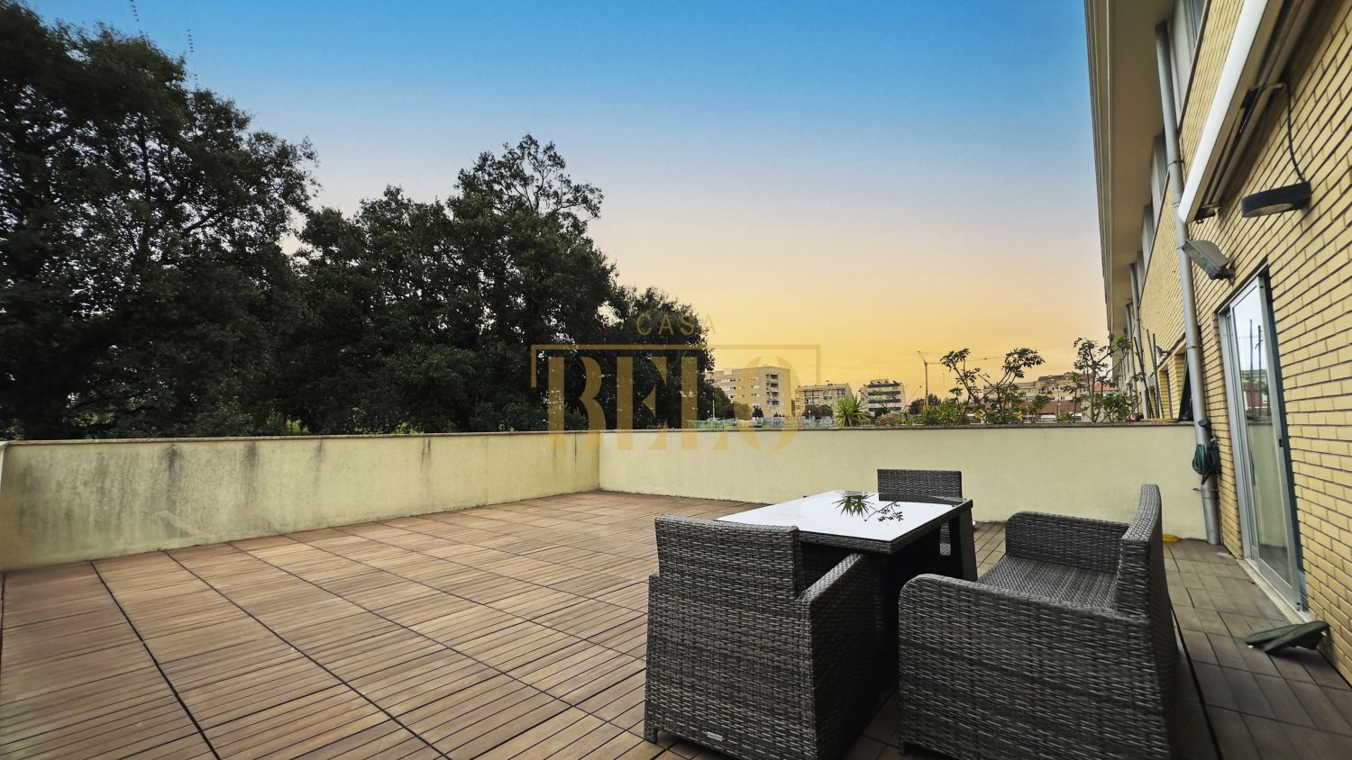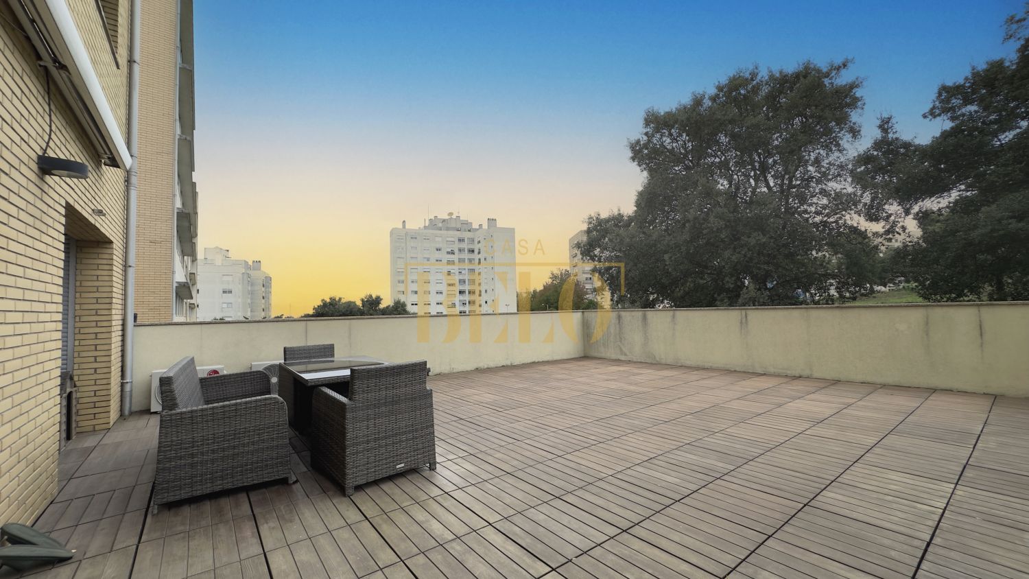 T3 com terraço raro e privacidade total – Pedrouços, Maia Viver num apartamento com a sensação de casa. Este T3 oferece um terraço amplo, contínuo à sala e à suíte, onde o dia começa com luz natural e termina com jantares ao ar livre, rodeado por árvores. Aqui não há espaços pequenos: são 124 m² bem distribuídos, com áreas amplas, luz, conforto e um ambiente pensado para quem valoriza qualidade de vida e bem-estar. Distribuição dos espaços • Sala espaçosa com ligação direta ao terraço • Cozinha totalmente equipada + lavandaria independente • 3 quartos, incluindo uma suíte com acesso ao terraço • 3 casas de banho (2 completas + 1 social) • Garagem box fechada com mezzanine para arrumação extra Destaques do imóvel • Terraço 42 m² com privacidade total – perfeito para convívios, crianças, pets ou simplesmente relaxar • Varanda adicional junto aos quartos • Suíte com parede ripada e iluminação embutida – ambiente acolhedor e moderno • Ar condicionado • Aspiração central • Caixilharia dupla – conforto acústico e térmico • Possibilidade de venda mobilado • Edifício com elevador Orientação solar Nascente/poente – luz natural durante todo o dia Localização • A 3 minutos do Hospital de São João e Polo Universitário • Transportes, comércio e serviços à porta • Rua tranquila e residencial • Acesso rápido à VCI e Circunvalação Este apartamento é para quem procura espaço, privacidade, luz e qualidade. Um T3 com um terraço que, simplesmente, não aparece todos os dias no mercado. Agende visita e veja pessoalmente o conforto e o ambiente que esta casa oferece. CASABELO - Mediação Imobiliária ID do Imóvel: CB08-52 AMI 24770 www.casabelo.pt Av. Dr. Germano Vieira 1108, Gueifães, Maia Autógrafos Diários Lda Intermediário de Crédito Vinculado nº 0007133 registado no Banco de Portugal. Somos uma imobiliária sediada na Maia, especializada na compra e venda de imóveis no Grande Porto: Maia, Porto, Matosinhos, Vila Nova de Gaia, Gondomar, Trofa e arredores. A nossa equipa garante um acompanhamento próximo, transparente e profissional em todo o processo de compra, venda ou arrendamento, bem como no acesso ao crédito habitação através da nossa intermediação de crédito (serviço gratuito para o cliente). Se procura uma imobiliária de confiança na Maia e no Porto, contacte a CASABELO. Transformamos planos em realidade.