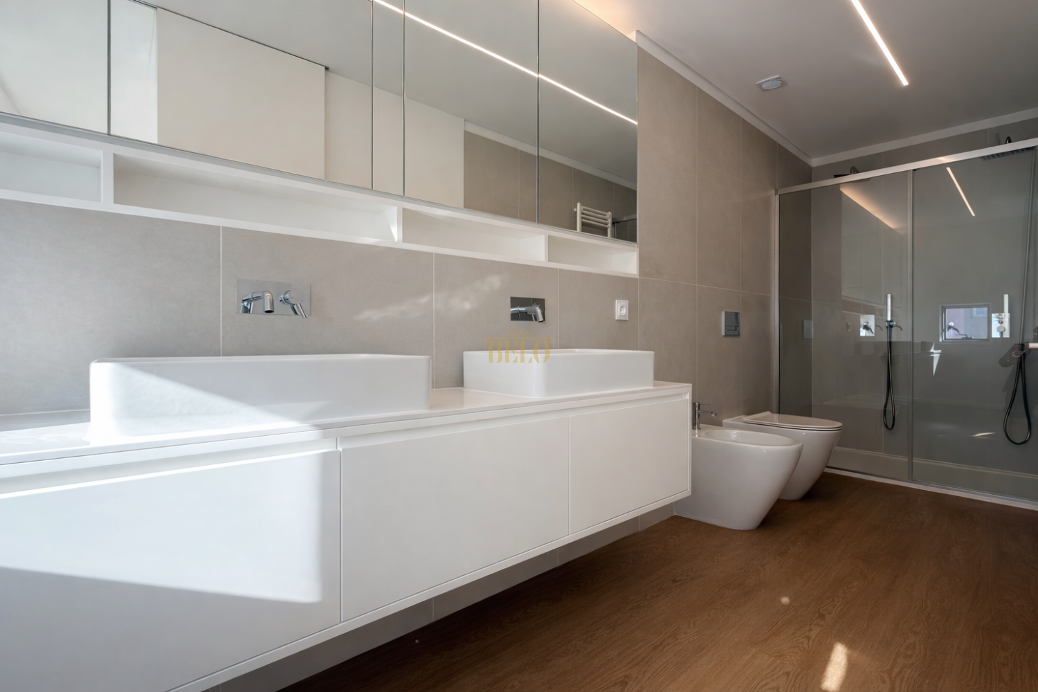 Moradia T3 de arquitetura contemporânea | Nova | Águas Santas Se procura uma moradia nova, com linhas modernas, excelente eficiência energética e espaços amplos, esta é daquelas que quando se entra… percebe-se que faz sentido. Com 346,5 m² de área bruta de construção inserida num lote de 290 m², esta moradia foi pensada para quem valoriza conforto, luz natural e funcionalidade, sem abdicar de um design minimalista e elegante. Destaques que fazem a diferença: – Certificado energético A – Construção recente com acabamentos de elevada qualidade – Ar condicionado em todas as divisões – Sistema de vigilância e segurança – Estacionamento privativo para 2 viaturas – Jardim exterior com ótima exposição solar Zona social ampla e luminosa A sala destaca-se pelas áreas generosas, pelo pavimento em madeira e pela lareira vinifica, criando um ambiente sofisticado e confortável. A ligação ao exterior traz uma luminosidade natural constante ao longo do dia. Cozinha moderna e totalmente equipada Cozinha de linhas direitas, armários lacados, iluminação integrada e eletrodomésticos encastrados. Funcional, elegante e pronta a usar. Ideal para quem gosta de cozinhar, mas também para quem gosta de receber. Área privada pensada para conforto Três quartos com roupeiros embutidos, incluindo uma suíte com casa de banho privativa. Todos com excelente exposição solar e sensação de amplitude. Existe ainda uma divisão adicional polivalente, perfeita para escritório ou quarto extra. Arrumação inteligente Armários embutidos em todas as divisões e soluções de organização que tornam a casa prática no dia a dia. Nada foi deixado ao acaso. Espaço exterior privado Jardim com relvado e zona pavimentada, ideal para refeições ao ar livre, convívios ou simplesmente para ter um espaço exterior seu, sem manutenção excessiva. Dados técnicos: Área total do terreno: 290 m² Implantação do edifício: 115,5 m² Área bruta de construção: 346,5 m² Área bruta dependente: 115,5 m² Certificação energética: A Localização Situada em Águas Santas, numa zona residencial tranquila, com bons acessos às principais vias, comércio e serviços nas proximidades. Esta não é apenas mais uma moradia nova. É uma casa com presença, com identidade e pronta a ser habitada sem necessidade de obras ou adaptações. CASABELO - Mediação Imobiliária ID do Imóvel: CB17-16 AMI 24770 www.casabelo.pt Av. Dr. Germano Vieira 1108, Gueifães, Maia Autógrafos Diários Lda Intermediário de Crédito Vinculado nº 0007133 registado no Banco de Portugal. CASABELO – Mediação Imobiliária (AMI 24770) Somos uma imobiliária sediada na Maia, especializada na compra e venda de imóveis no Grande Porto: Maia, Porto, Matosinhos, Vila Nova de Gaia, Gondomar, Trofa e arredores. A nossa equipa garante um acompanhamento próximo, transparente e profissional em todo o processo de compra, venda ou arrendamento, bem como no acesso ao crédito habitação através da nossa intermediação de crédito (serviço gratuito para o cliente). Se procura uma imobiliária de confiança na Maia e no Porto, contacte a CASABELO. Transformamos planos em realidade.