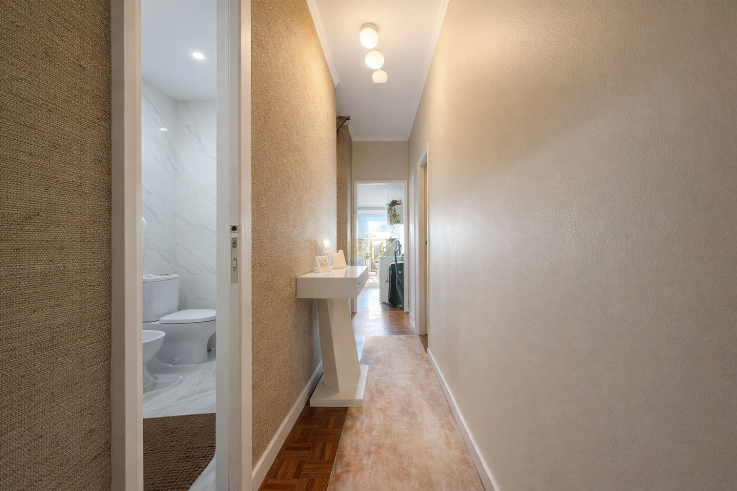 Moradia térrea T2+1 (3 quartos) com terraço, painéis solares, ar condicionado e aproveitamento de sótão, a poucos minutos do Mar Shopping Uma casa pronta a habitar, com excelente luz natural, espaço exterior e uma localização prática para o dia a dia. Esta moradia térrea, com aproveitamento de sótão para mais um quarto com bastante arrumação, oferece na prática a versatilidade de uma elegante T2+1, ideal para quem valoriza conforto, funcionalidade e uma vivência tranquila sem abdicar da proximidade a tudo. No piso principal, encontra uma zona social acolhedora e luminosa, com sala de estar e jantar bem distribuídas, cozinha moderna e funcional, dois quartos e uma casa de banho ampla. O sótão foi inteligentemente aproveitado, criando uma divisão extra muito agradável, perfeita como quarto, com excelente capacidade de arrumação. No exterior, a casa surpreende com um agradável logradouro, ideal para momentos em família, refeições ao ar livre, zona de lazer ou simplesmente para aproveitar os dias de sol com total privacidade. Com orientação nascente/poente, beneficia de luz natural ao longo de todo o dia, tornando os espaços mais confortáveis e acolhedores. Destaca-se ainda pelos painéis solares e ar condicionado, dois elementos que fazem a diferença no conforto e na eficiência da habitação. Tudo isto numa localização estratégica, a escassos minutos do Mar Shopping, com acessos rápidos, comércio, serviços e várias comodidades por perto. CASABELO - Mediação Imobiliária ID do Imóvel: CB02-184 AMI 24770 www.casabelo.pt Av. Dr. Germano Vieira 1108, Gueifães, Maia Autógrafos Diários Lda Intermediário de Crédito Vinculado nº 0007133 registado no Banco de Portugal. CASABELO – Mediação Imobiliária (AMI 24770) Somos uma imobiliária sediada na Maia, especializada na compra e venda de imóveis no Grande Porto: Maia, Porto, Matosinhos, Vila Nova de Gaia, Gondomar, Trofa e arredores. A nossa equipa garante um acompanhamento próximo, transparente e profissional em todo o processo de compra, venda ou arrendamento, bem como no acesso ao crédito habitação através da nossa intermediação de crédito (serviço gratuito para o cliente). Se procura uma imobiliária de confiança na Maia e no Porto, contacte a CASABELO. Transformamos planos em realidade.
