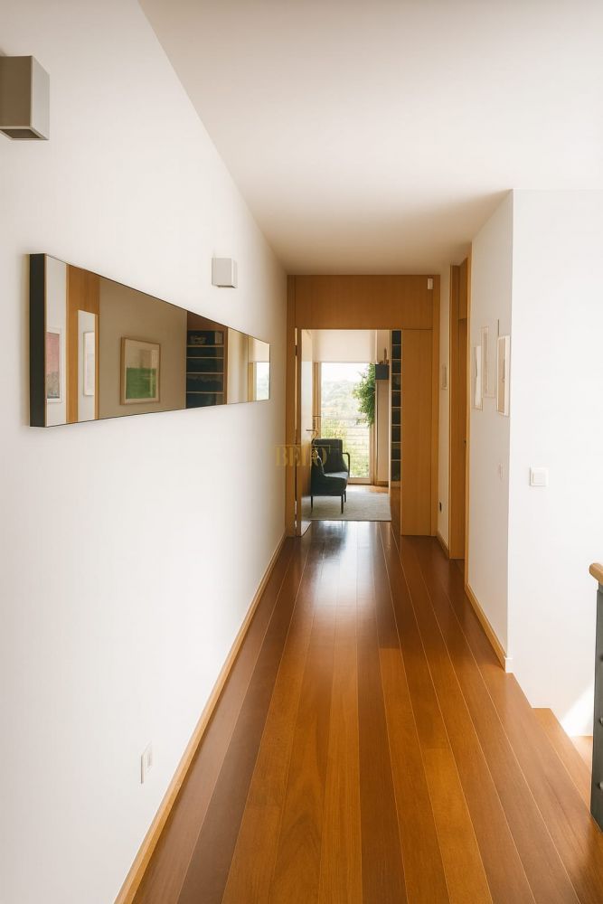 Moradia T4+2 em Condomínio Fechado – Villas Real Maia | Moreira da Maia Apresenta-se esta moradia T4+2 com 4 pisos, ideal para famílias que exigem espaço, luminosidade natural excecional e conforto superior — posicionada no exclusivo Condomínio Villas Real Maia, uma zona procurada pela segurança, áreas verdes e comodidades de lazer. Área Útil: 200 m² PISO -1: Garagem fechada para 2 carros + lavandaria ampla + arrumos + WC social. Dois espaços versáteis ideais para ginásio, escritório ou hobby room. PISO 0: Sala de estar e jantar com excelente luminosidade e acesso direto ao jardim privativo, perfeita para convívio e refeições ao ar livre. Cozinha totalmente equipada com despensa e WC serviço. PISO 1: Duas suites completas com varanda privativa, garantindo conforto e privacidade. PISO 2: Dois quartos adicionais (um usado como closet e outro como escritório), ambos com varanda, e casa de banho completa. - Aquecimento central e aspiração central para máximo conforto. - Clarabóias estratégicas que maximizam a entrada de luz natural. - Caixilharia em alumínio anodizado com vidro duplo — conforto térmico e acústico. - Soalho em madeira de alta qualidade e pedra natural nas casas de banho. - Excelente exposição solar Norte/Sul, garantindo luz ao longo de todo o dia. Inserida no Villas Real Maia, um condomínio maduro com: - Piscina para adultos e infantil - Salão de festas / salão de condomínio - Áreas verdes cuidadas - Ambiente familiar, tranquilo e seguro - Acesso rápido às principais vias e serviços essenciais (escolas, comércio e transportes). Porquê Esta Moradia Vale a Pena? Esta moradia entrega uma experiência completa: quatro pisos com funções bem definidas, fácil adaptação a home office, zona fitness ou quarto de hóspedes, acabamentos de qualidade que realmente se sentem no dia a dia e um jardim privativo que faz a diferença em zonas urbanas. É o tipo de casa que, num mercado exigente como Moreira da Maia, se destaca em conforto e versatilidade. CASABELO - Mediação Imobiliária ID do Imóvel: CB07-51 AMI 24770 www.casabelo.pt Av. Dr. Germano Vieira 1108, Gueifães, Maia Autógrafos Diários Lda Intermediário de Crédito Vinculado nº 0007133 registado no Banco de Portugal. CASABELO – Mediação Imobiliária (AMI 24770) Somos uma imobiliária sediada na Maia, especializada na compra e venda de imóveis no Grande Porto: Maia, Porto, Matosinhos, Vila Nova de Gaia, Gondomar, Trofa e arredores. A nossa equipa garante um acompanhamento próximo, transparente e profissional em todo o processo de compra, venda ou arrendamento, bem como no acesso ao crédito habitação através da nossa intermediação de crédito (serviço gratuito para o cliente). Se procura uma imobiliária de confiança na Maia e no Porto, contacte a CASABELO. Transformamos planos em realidade.